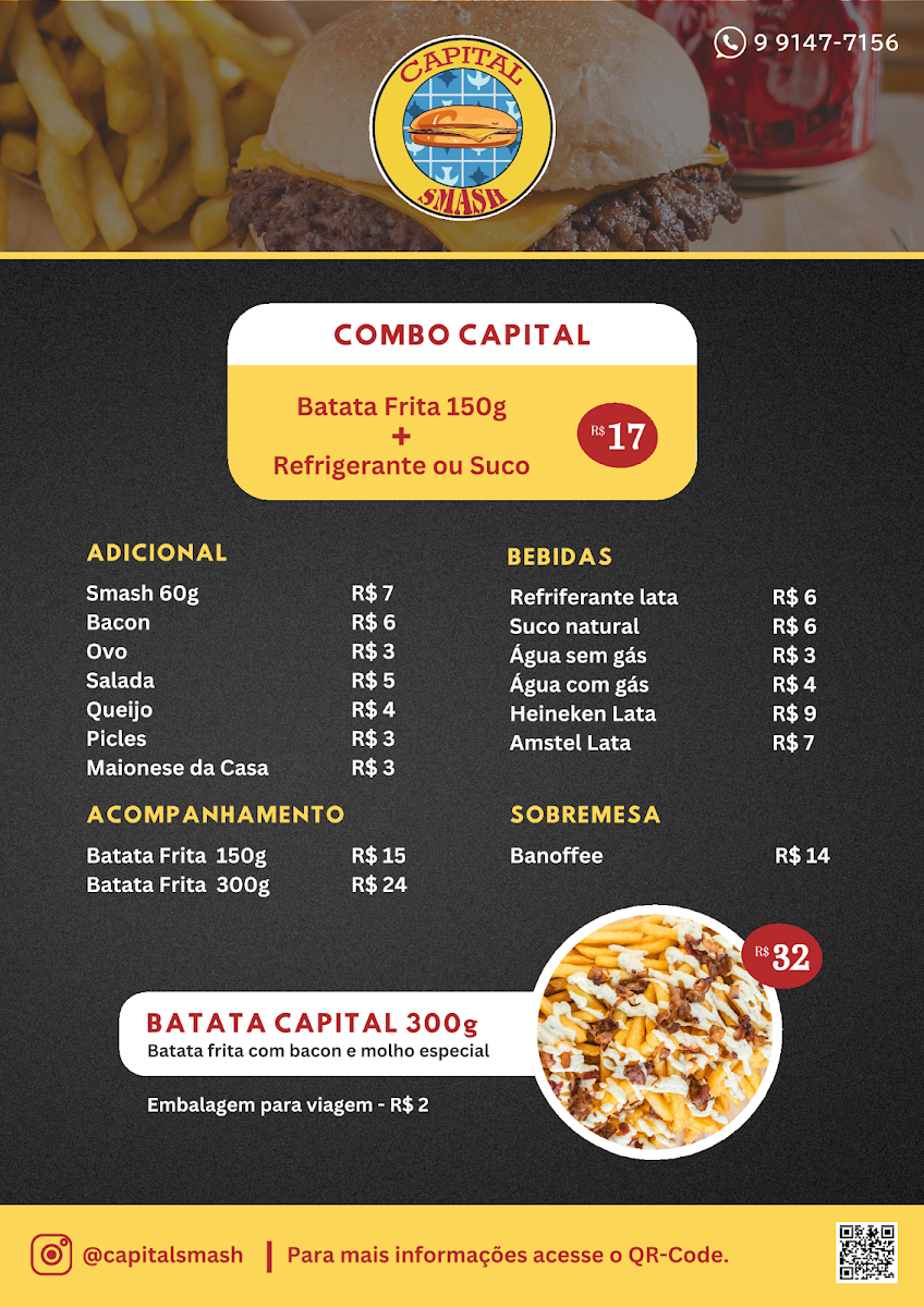 Located in the heart of Mangueiral, Brasília, Capital Smash has quickly become a go-to destination for burger enthusiasts. With a focused menu that highlights quality over quantity, guests rave about the expertly crafted smash burgers. Reviewers like Daniel Herold praise the tender, flavorful meat and perfectly fried potatoes, creating a satisfying dining experience.